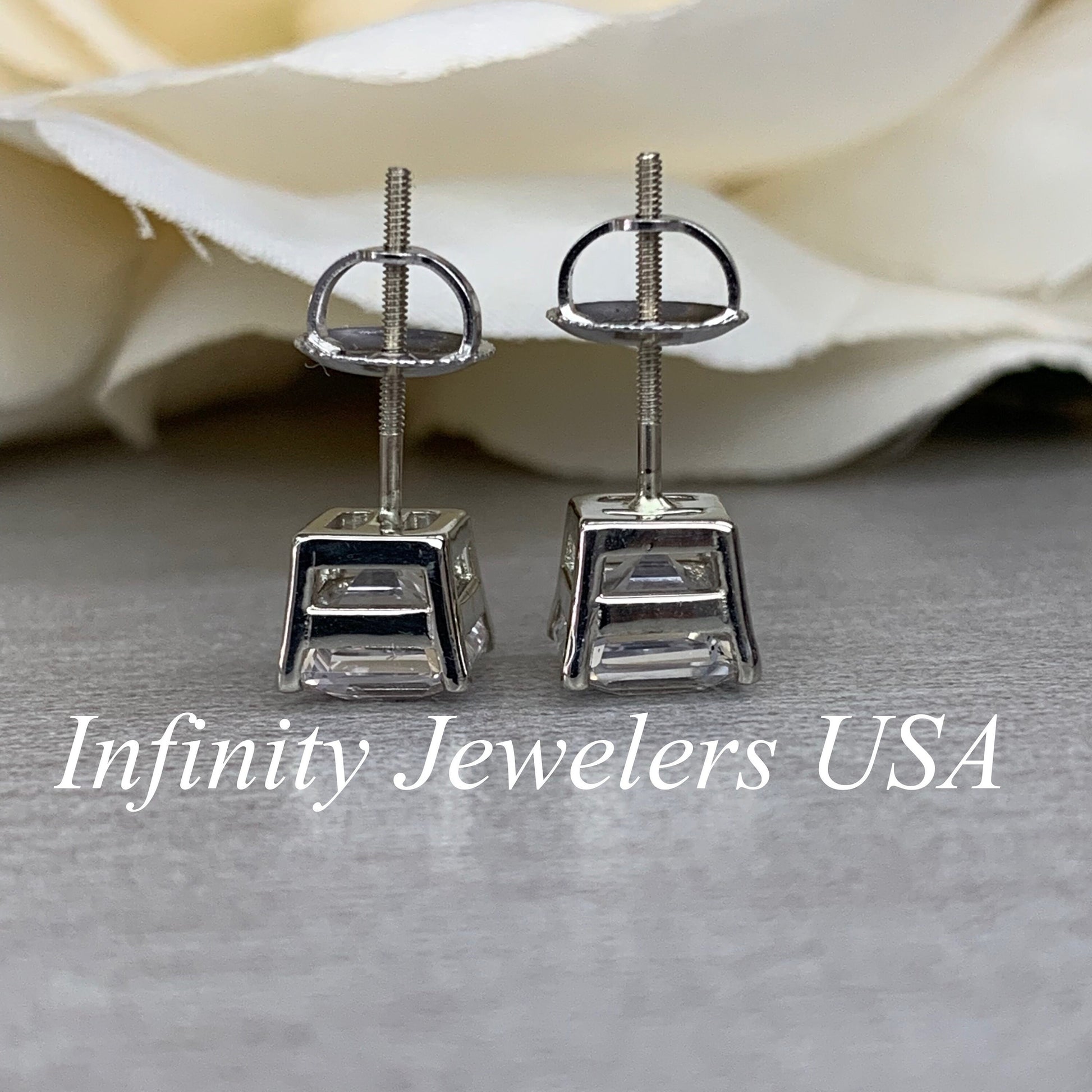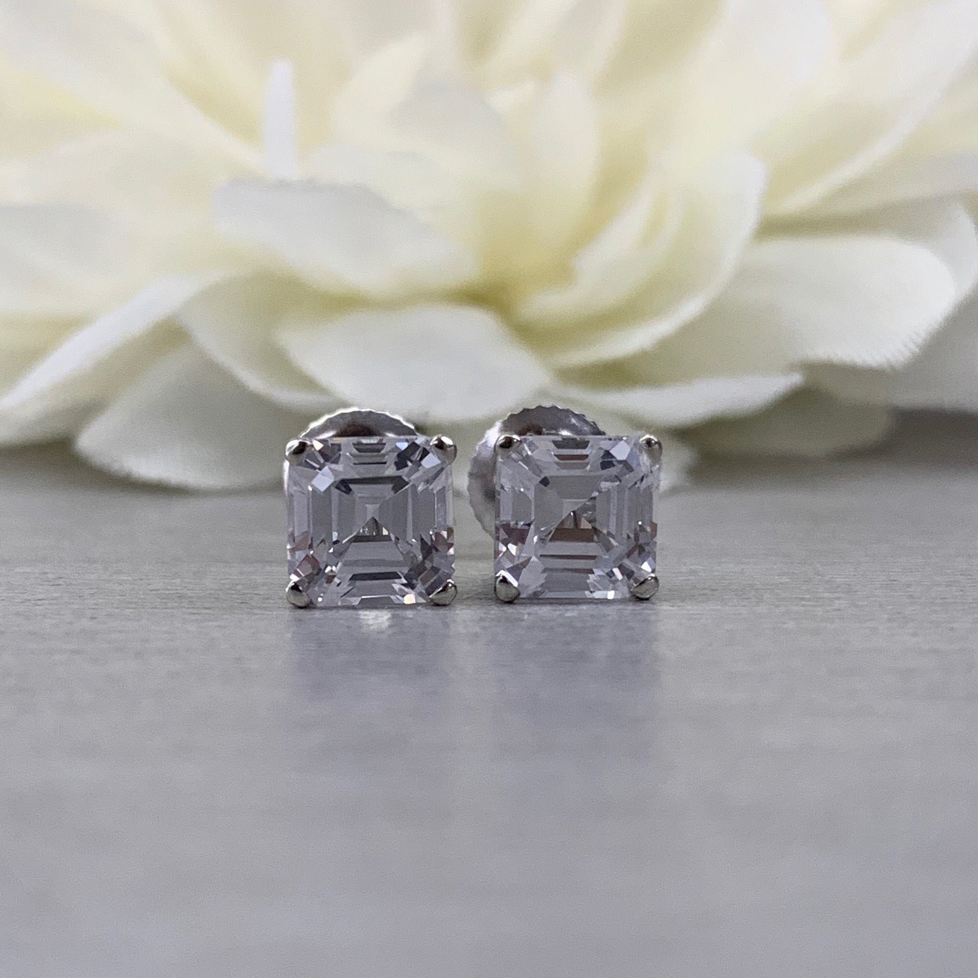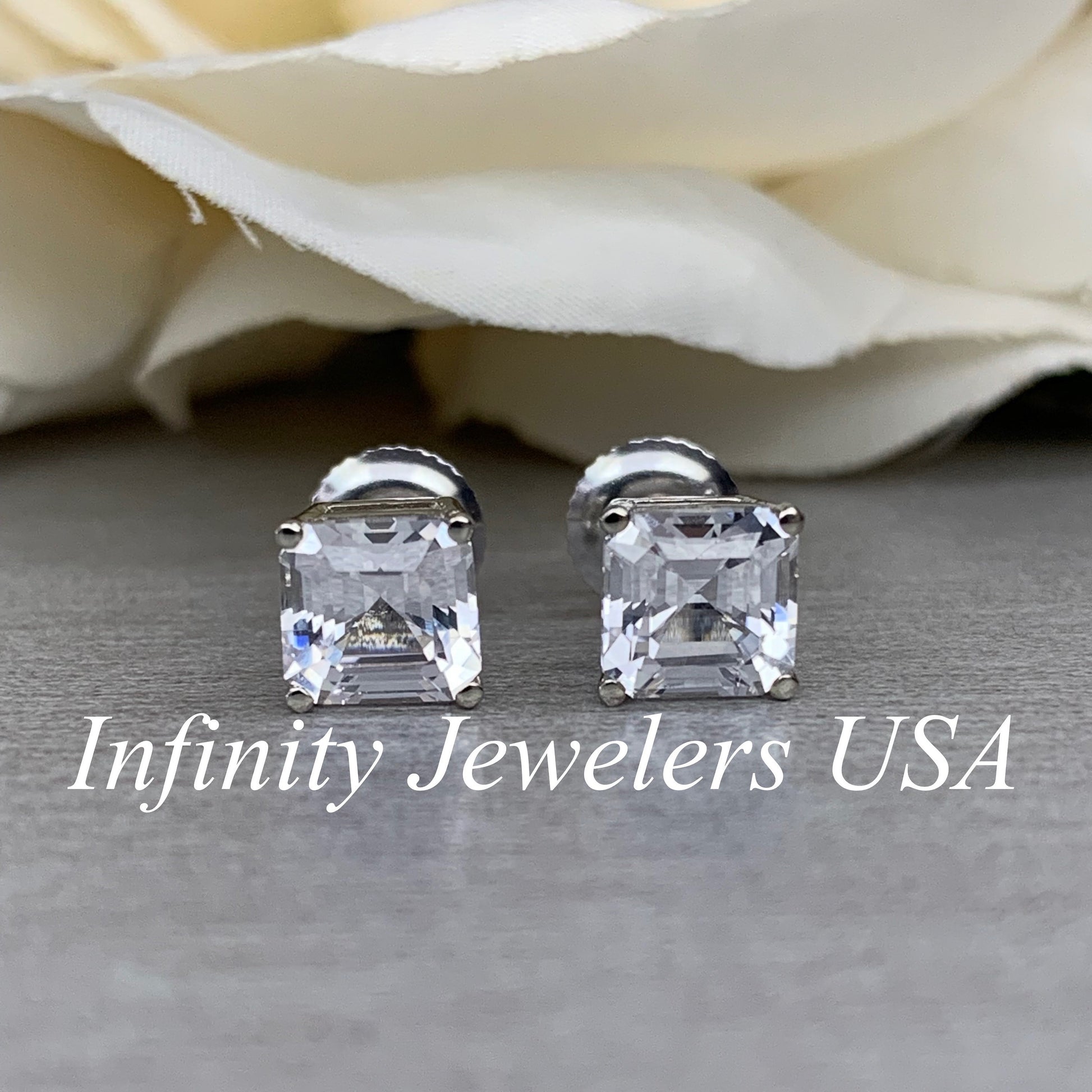 -Center Stone Size: 6x6mm - approx. 1.00ct each diamond equivalent