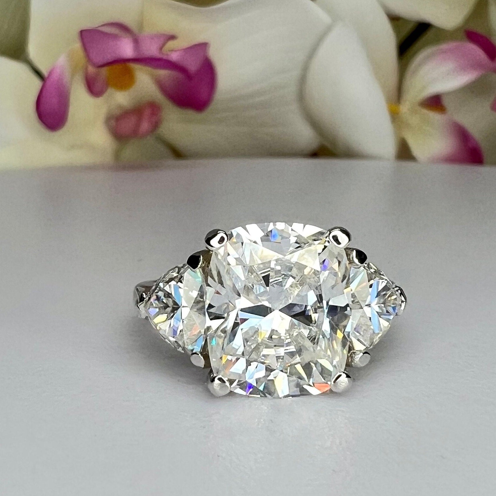 -Side Stones Size: 6x6mm - approximately 0.70ct each diamond equivalent