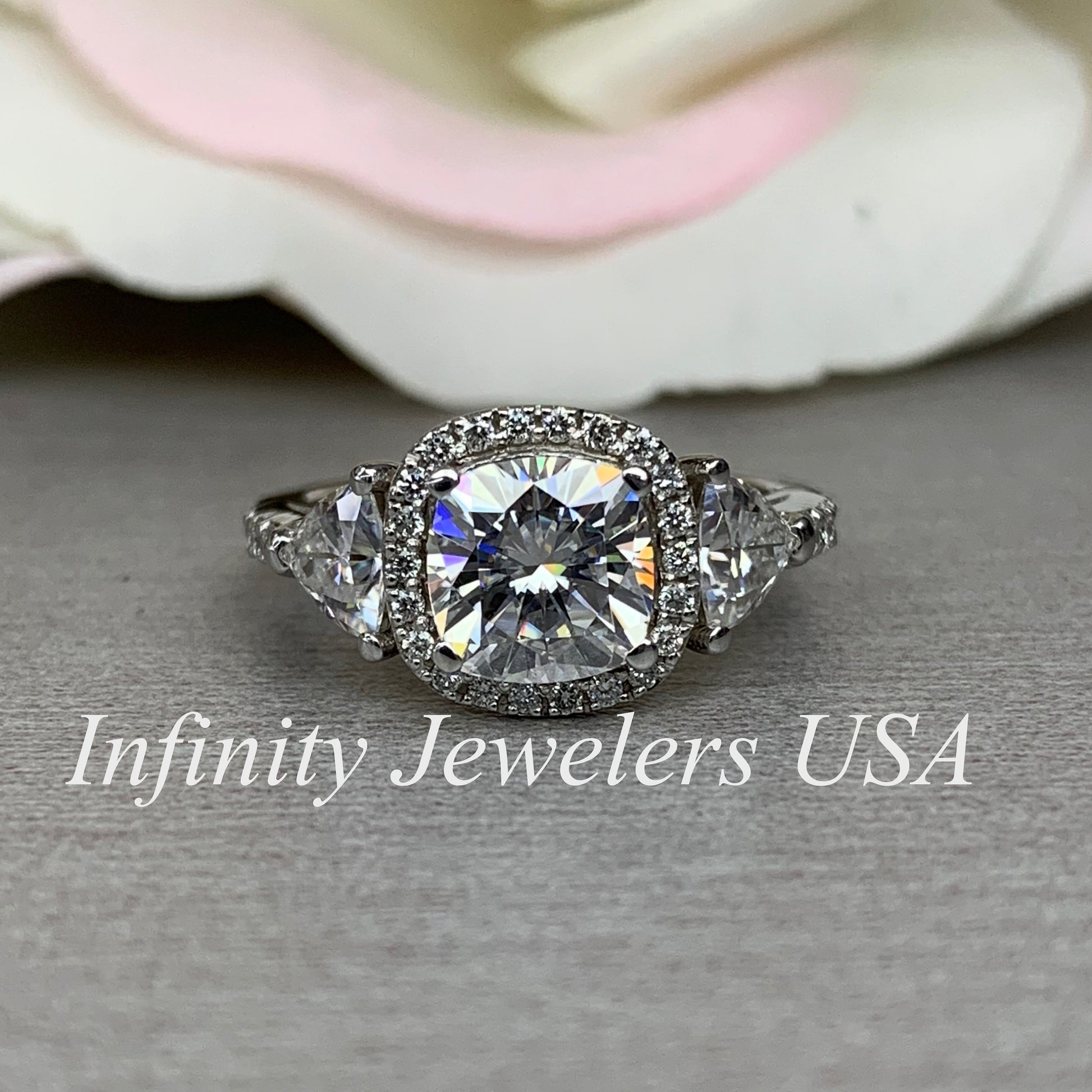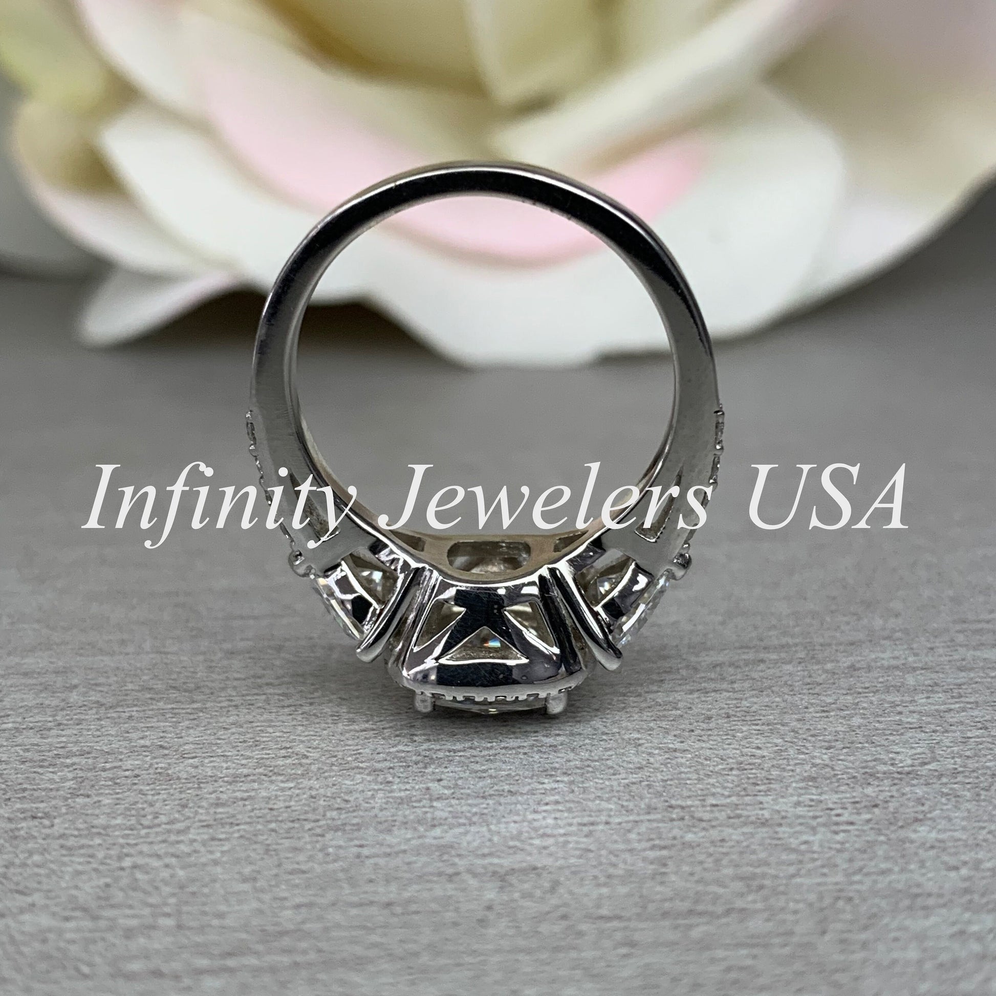 -Side Stones Size: 5x5mm - approx. 0.80ctw (.40ct each) diamond equivalent