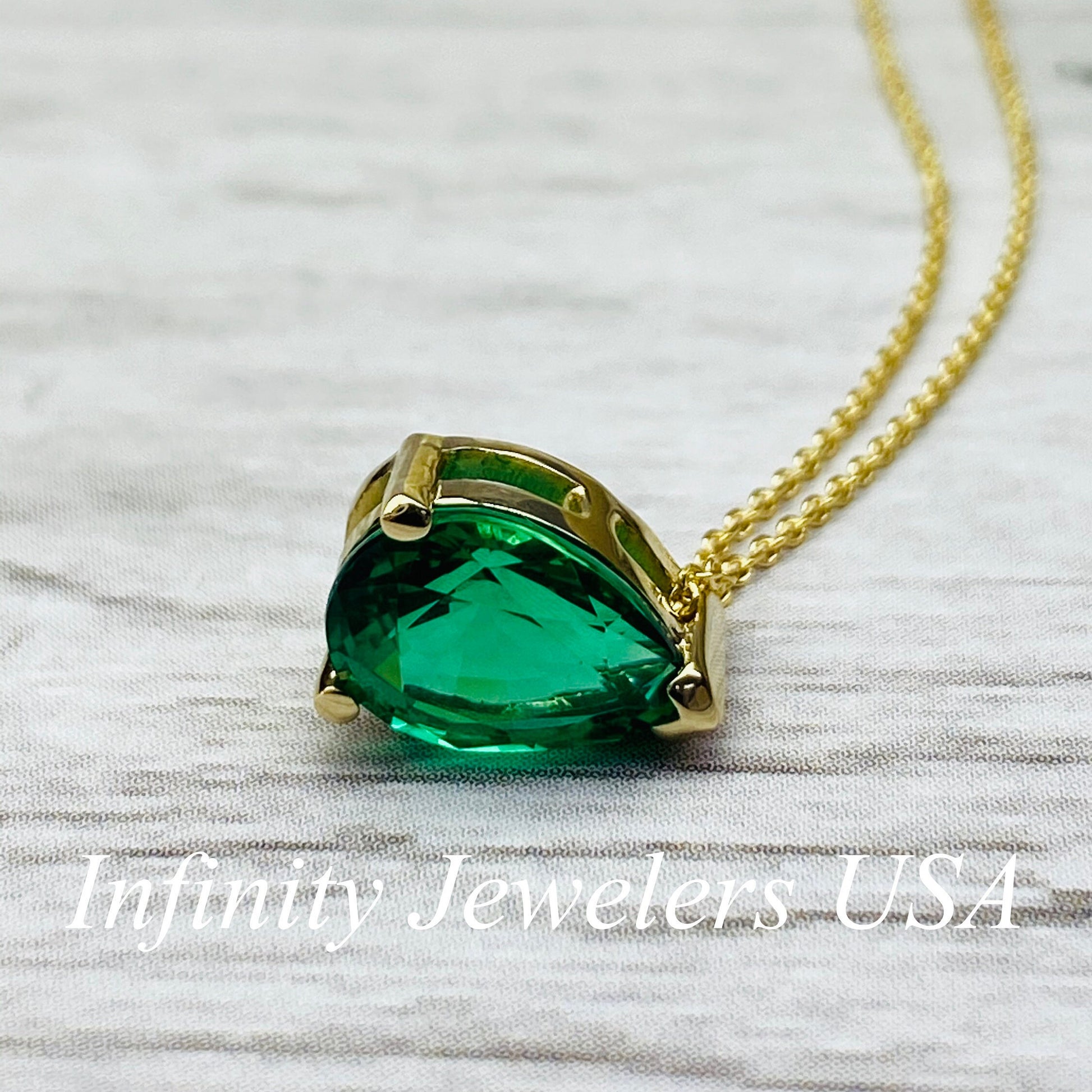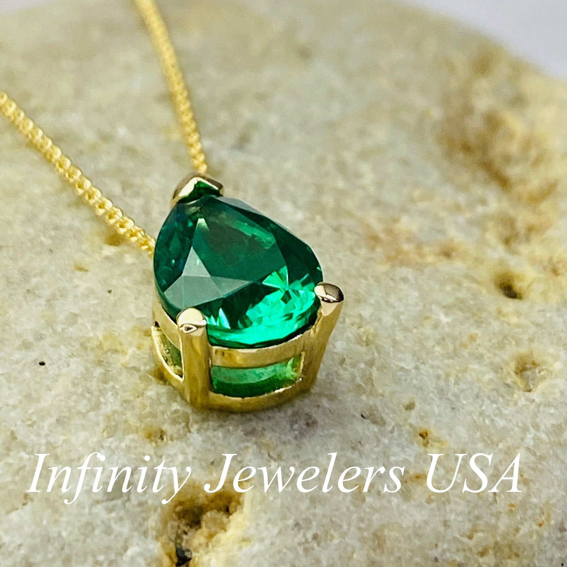 The pendant pictured is lab created emerald #6999